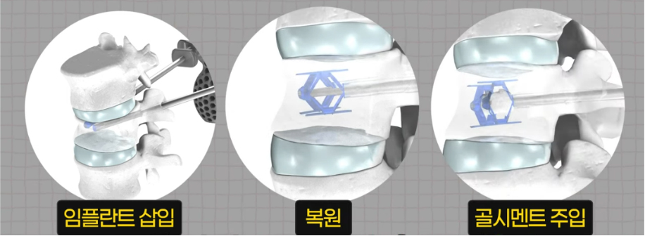 티타늄 임플란트로 주저앉은 척추를 들어 올려 복원하고, 골시멘트로 견고하게 고정하는 신의료기술입니다.